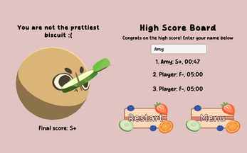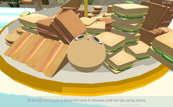 You are a tiny piece of cookie dough yet to grow into a cookie—take risks and adventure upwards the tower of sweets, pick up decorations along the way, and become pretty before tea time at the top of the tower! You will be scored on prettiness, but don't be too greedy as prettiness comes with a cost...
